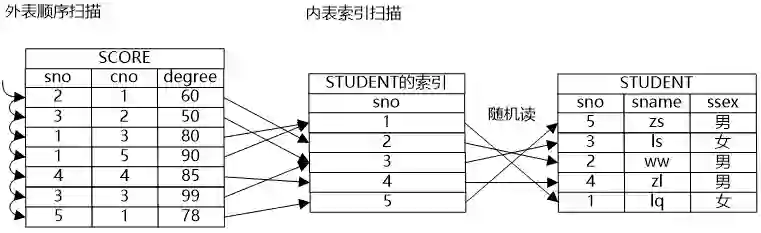 大明一边在纸上画一边说:“要对两个关系做连接,受笛卡尔积的启发,可以用一个算法复杂度是O(mn)的方法来实现,我们叫它Nestlooped Join方法。这种方法虽然复杂度比较高,但是和顺序扫描一样,胜在具有普适性。”