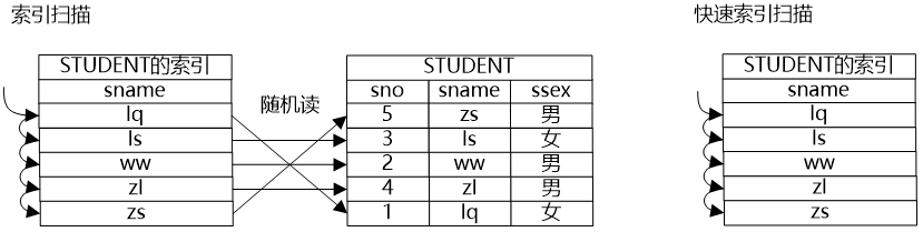 大明则继续为牛二哥“捧哏”,在纸上画出了索引扫描和快速索引扫描的图。