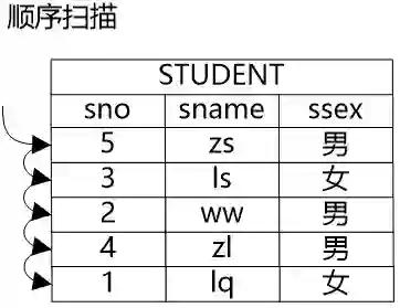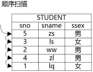 牛二哥说:“是的,我们就来说说这些路径的含义吧。如果要获得一个表中的数据,最基础的方法就是将表中的所有的数据都遍历一遍,从中挑选出符合条件的数据,这种方式就是顺序扫描路径。顺序扫描路径的优点是具有广泛的适用性,各种表都可以用这种方法,缺点自然是代价通常比较高,因为要把所有的数据都遍历一遍。”大明同时在纸上画了个图,说:“这个图大概就是顺序扫描路径。”