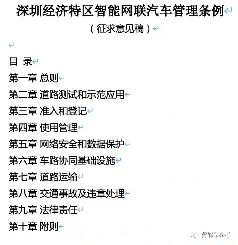 《深圳经济特区智能网联汽车管理条例》,共10章60条,涵盖了从智能网联汽车自动驾驶的定义、市场准入,到路权、权责认定等方面的具体规定和管理办法。