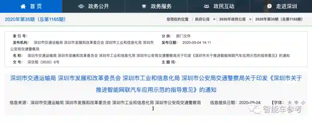 之后又在2020年,发布《深圳市关于推进智能网联汽车应用示范的指导意见》,对自动驾驶载人、载货、城市环卫等多个应用领域落地进行指导规范。