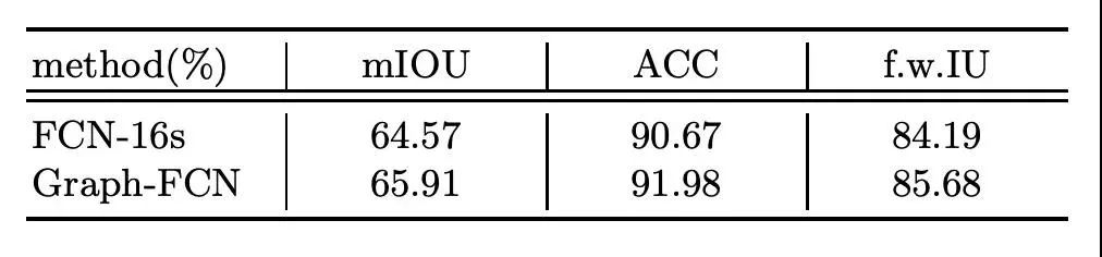 Graph-FCN 和 FCN-16s 的性能对比情况。