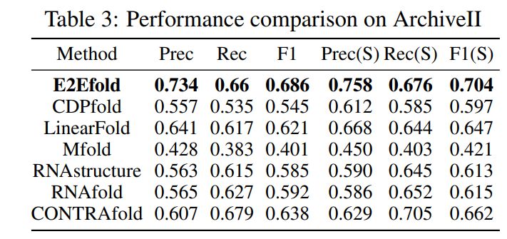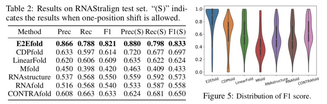 它能预测得到显著更优的结构(尤其是对于假结结构);同时在推理时间方面,E2Efold 能与之前最快的算法相媲美