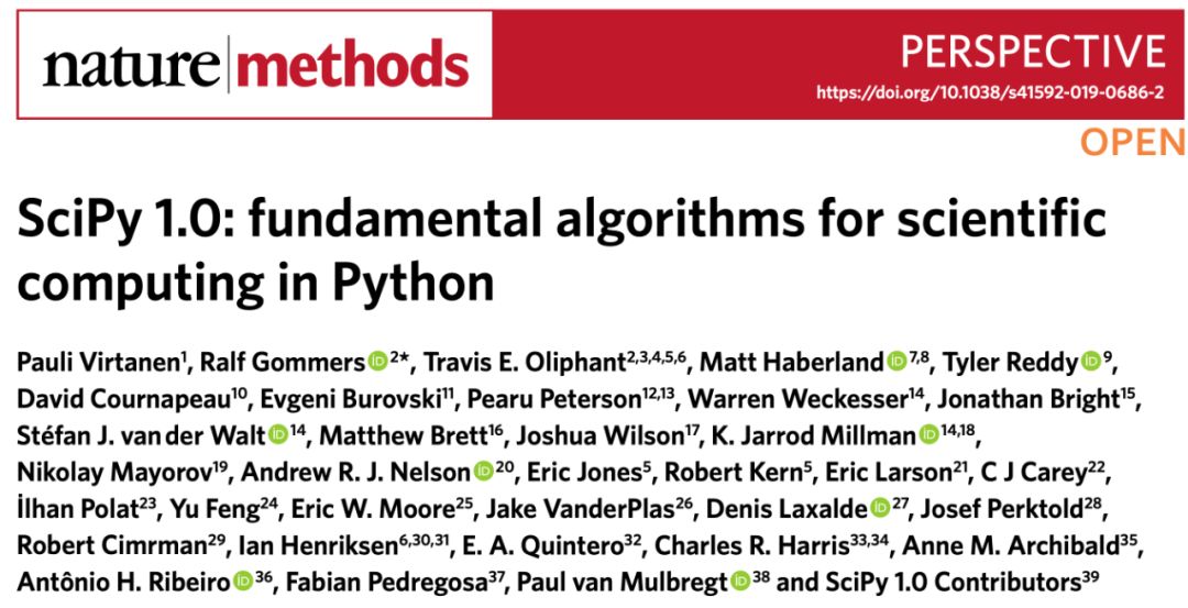 2 月 3 日,SciPy 的维护者在 Nature Methods 上发表了一篇论文,其