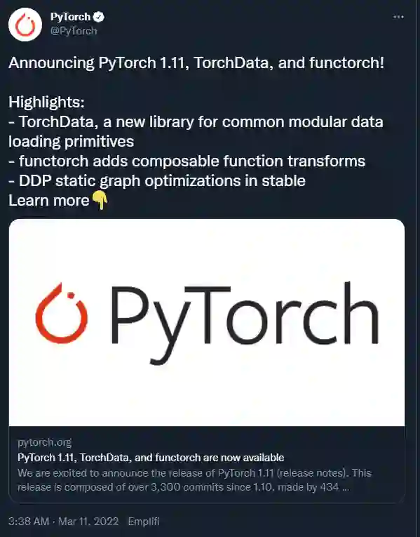 PyTorch 1.11 的发布,给用户带来了一些惊喜。有网友表示,我都转到 JAX 了,这波是要诱惑我回归 PyTorch 啊。