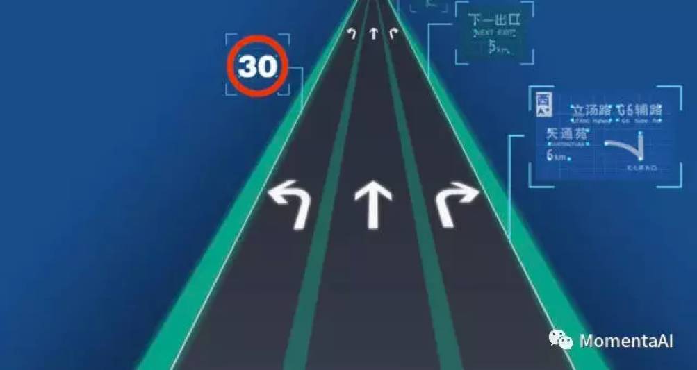 在黑暗、逆光、恶劣天气和缺乏清晰的车道线的情况下,做到高性能地识别多个车道、交通标志和信号、及可行驶区域。