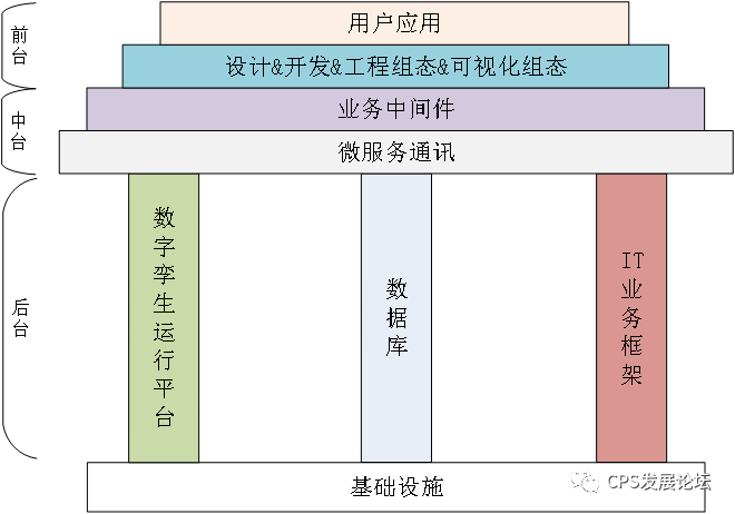 前台应用:为开发者与工程人员及最终用户提供一系列工具及可视化界面;其中设计&开发&工程组态&可视化组态为开发者、行业专家、工程实施人员提供了数字孪生建模、IT业务建模及可视化界面的设计与开发门户;经过上述参与者的开发与工程实施后,便形成了用户应用前台,可供最终用户进行使用。