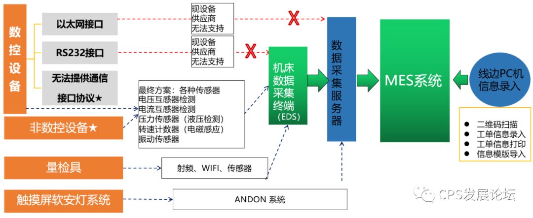 对于设备的数据采集,通过线边PC机信息扫描录入、机床数据采集(在设备上加载各类传感器,收集各类信号,通过数据转换程序从而实现设备自动采集数据)、ANDON信息采集达成相关数据采集。