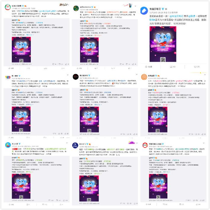 它广结良友,官宣出道当天,就有包括道云笔记、中国联通、丧茶、金山词霸、科大讯飞在内的20余品牌纷纷献上“联萌圣诞大礼包”,助力这位网蓝C位出道: