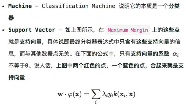 有了直观的感知,在定义这一节在做一些深入的思考,分解名词(Support Vector Machine)并尝试解释: