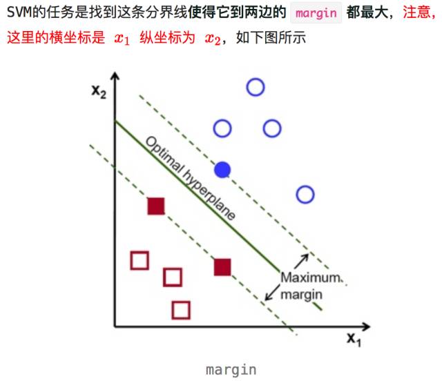 注:s.t. :subject to 表示约束条件,表达的意思等价于:为了使得所有样本数据都在间隔区(两条虚线)以外。