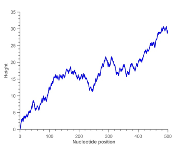 一条长度 500bp的人类线粒体基因序列X93334的图形表示