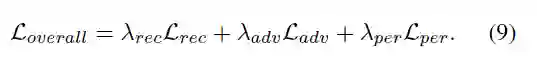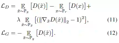 生成对抗网络被证明可以有效生成清晰且视觉上令人满意的图像。在这里采用WGAN-GP ,该算法提出了梯度范数的二次化处理来代替权重削减,从而得到更稳定的训练和更好的性能。这种损失可以解释为: