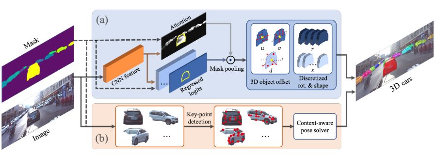 图4 3D汽车理解训练流程图。图(a)直接方法 。图(b)基于关键点的方法