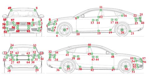 图2 定义汽车模型的3D关键点,每个模型都由66个关键点构成。