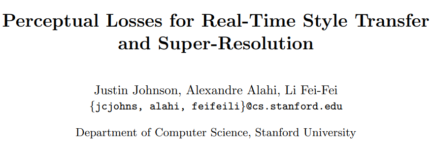 该项目使用到的最后一项技术源于 2016 年斯坦福大学李飞飞团队的研究论文《Perceptual Losses for Real-Time Style Transfer and Super-Resolution》。