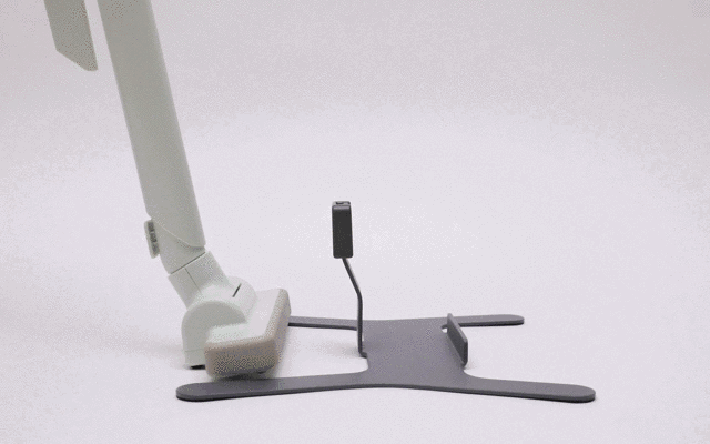 地板吸头还有一个专门的收纳底座,可以让机器站立着收纳。(使用其他吸头时,可以挂着收纳)