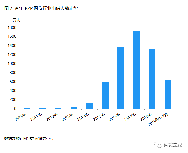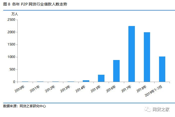 从近年P2P网贷行业借款人数走势来看,与出借人数走势基本一致。