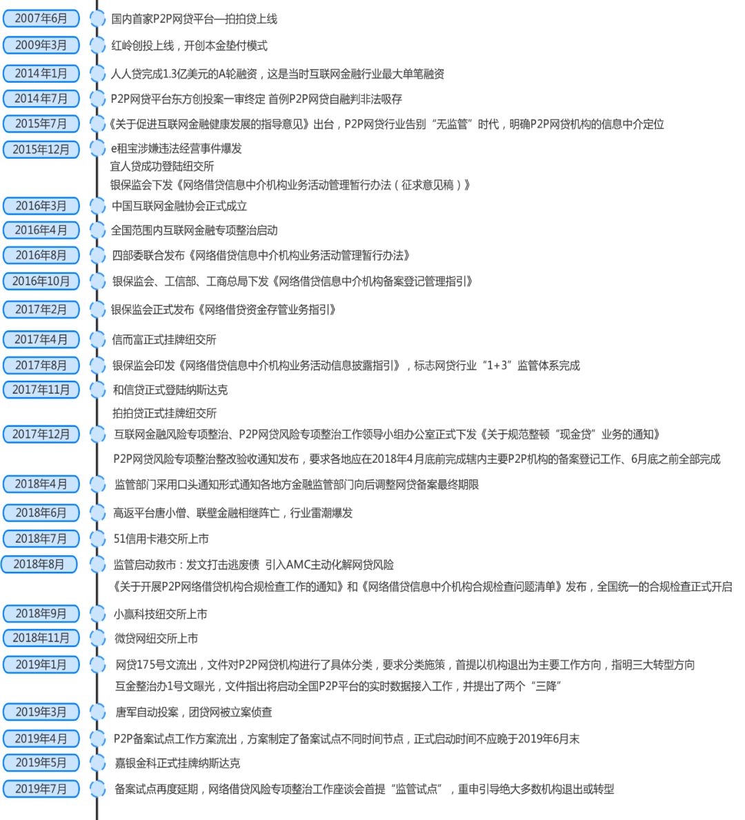 2019年7月互金整治领导小组和网贷整治领导小组联合召开的网络借贷风险专项整治工作座谈会首提“监管试点”,并且重申引导绝大多数机构退出或转型。