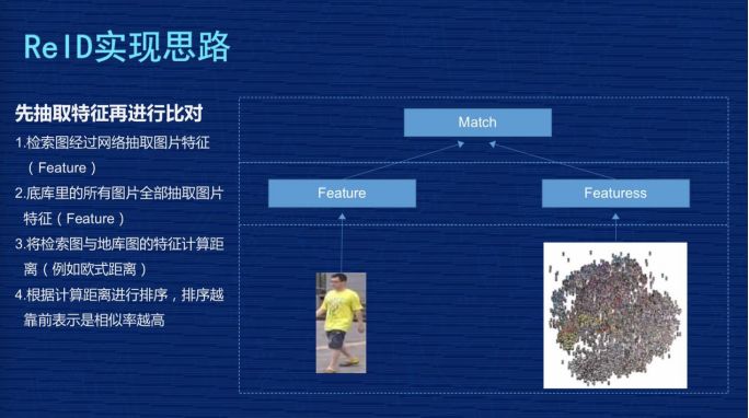 再来看一下 ReID 实现思路与常见方案。ReID 从完整的过程分三个步骤: