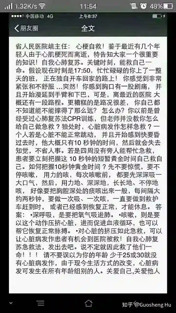5. 老师学生的强度都非常大,熬夜高强度工作,以致于论文群里的深研院的彭小江老师非常严肃地分享了医生给他的心梗自救-自我心肺复苏的一些方法(图5,6). 大家这才意识到自己在玩儿命.