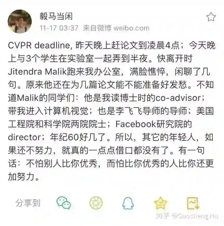 2. 马毅老师的微博(图4)同样引起了热议: 伯克利的马毅老师和六十多岁的Malik教授为了赶deadline深夜和学生一起奋战, 讨论论文, 修改论文.