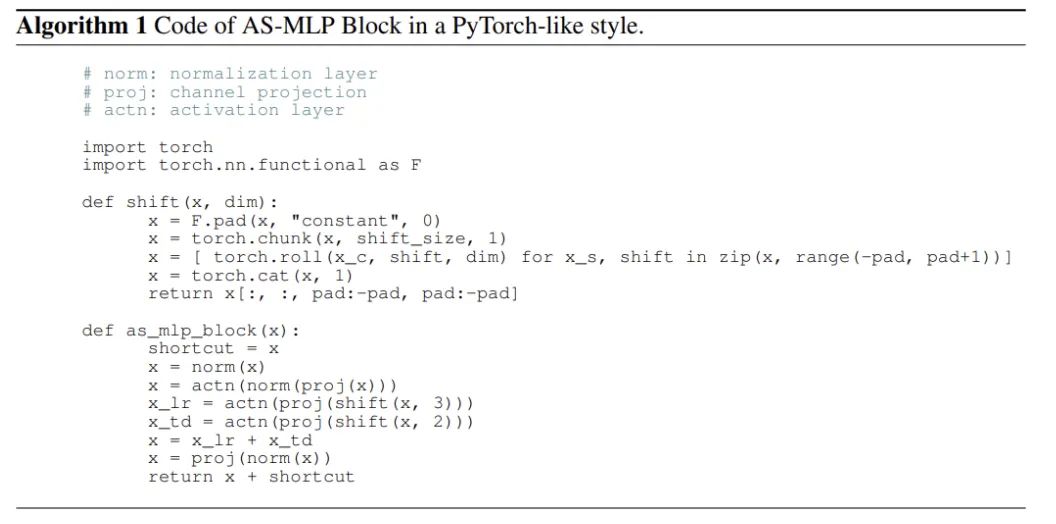 这里展示下AS-MLP论文中提供的伪代码: