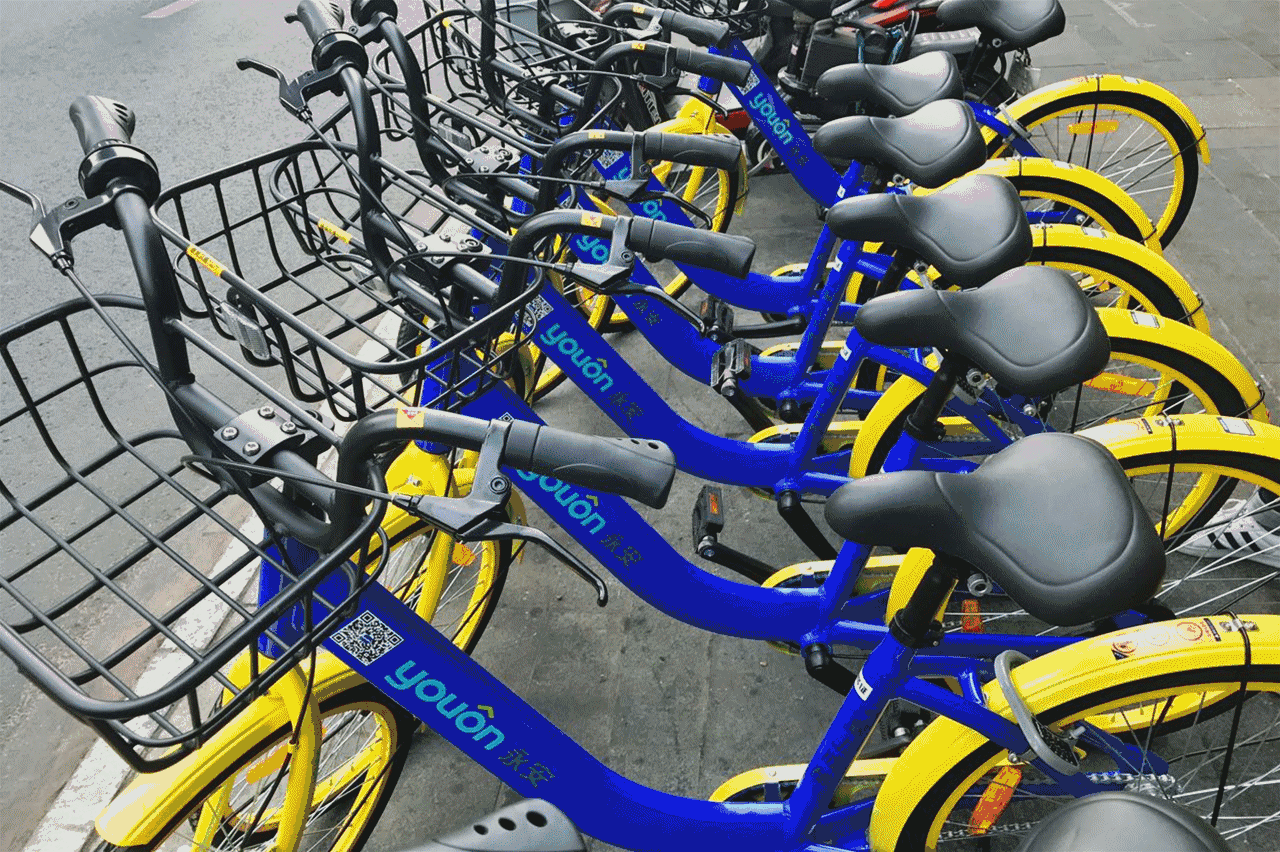图:五颜六色的共享单车
