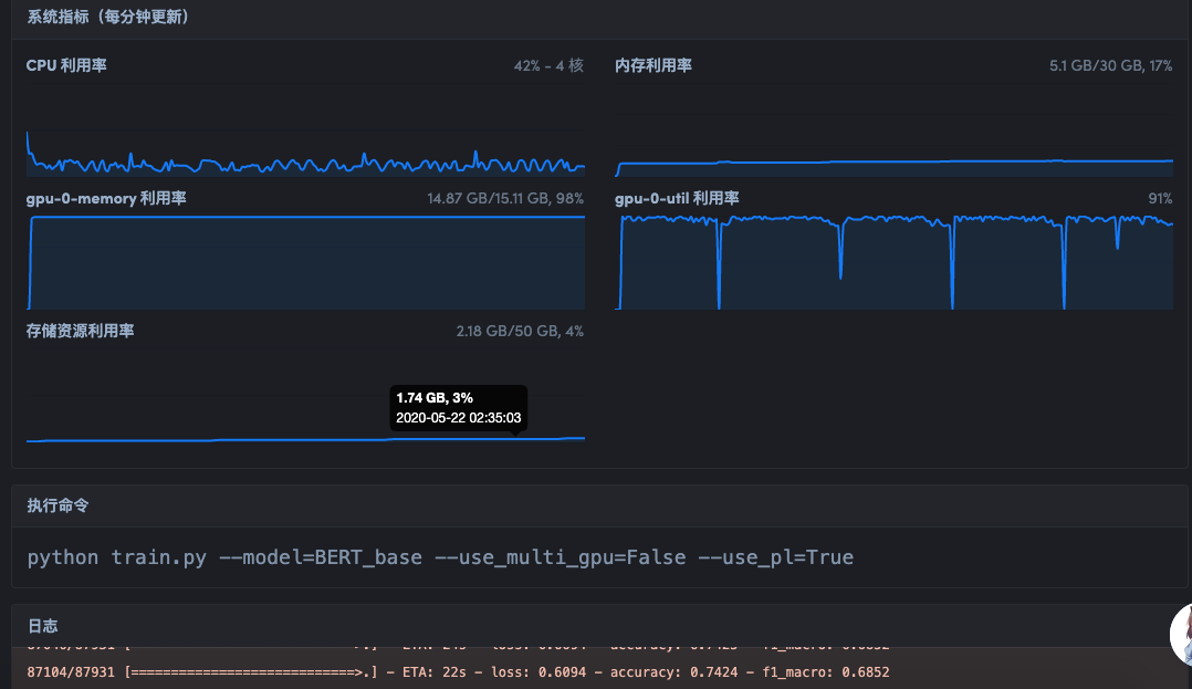 command: "python train.py --model=BERT_base --use_multi_gpu=False --use_pl=True"