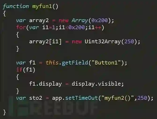 6. 随后 JavaScript 代码攻击 Adobe Reader 的 JavaScript 引擎;