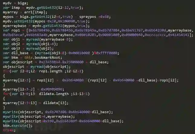 5. JavaScript 代码使用堆喷射(heap-spray)技术来获取读写内存访问权限;
