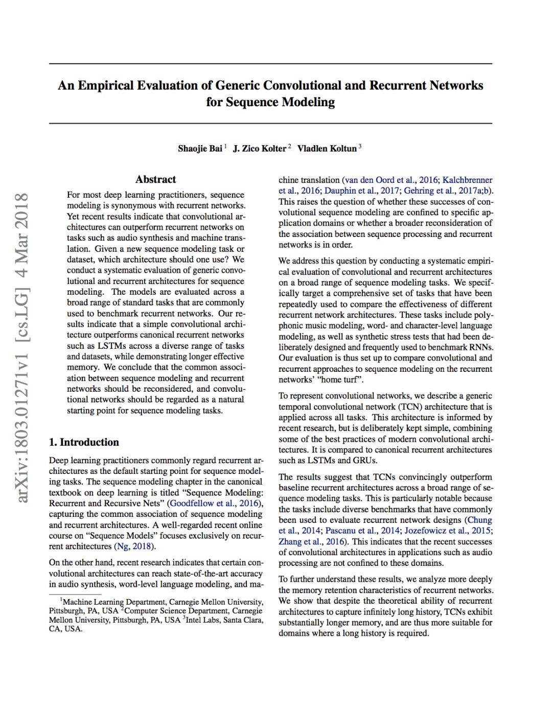 附注3:这篇论文(https://arxiv.org/abs/1803.01271)比较了CNN和RNN。时间卷积网络(TCN)“在面对一系列广泛的任务和数据集时比典型的循环网络(比如LSTM)更胜一筹,同时展现了更出色的长期记忆。”