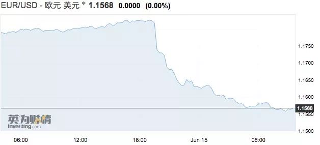 欧元/美元一度拉涨逾30点,触及日高1.1852。此后迅速回落,6月15日早盘更是暴跌至1.15附近,市场的表现无疑体现了其对于欧洲央行政策立场的解读。