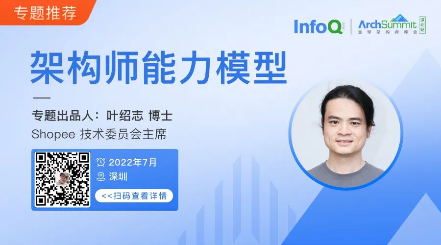另外,在 7 月 15-16 日的 ArchSummit 全球架构师峰会(深圳站)2022 上,也设置了旨在帮助架构师提升软技能的「架构师能力模型」专题,邀请 Shopee 技术委员会主席叶绍志博士,和前丰巢 CTO 黄明(Andy)来介绍他在 AI 团队管理上的宝贵心得。感兴趣的可以点击阅读原文查看会议官网。