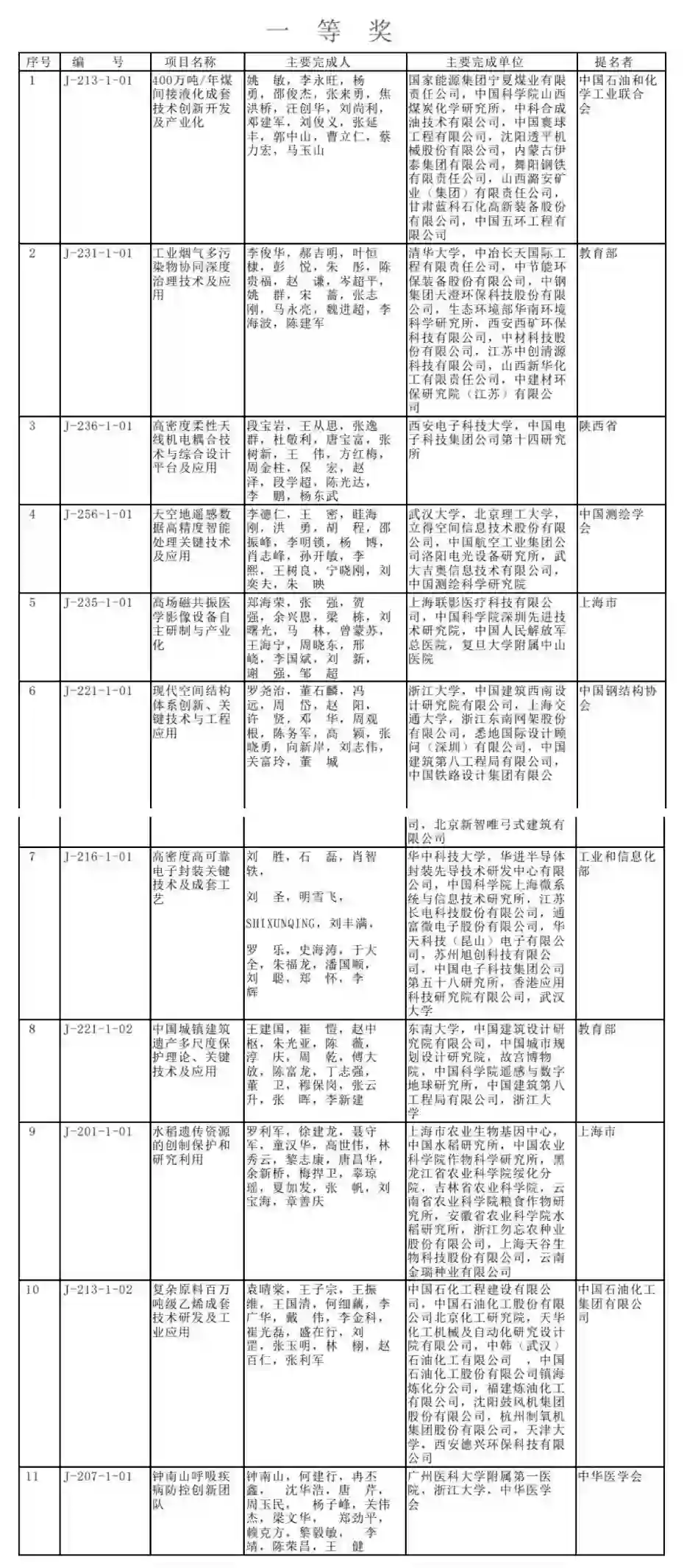本次国家科学技术进步奖 157 项,其中一等奖 18 项(通用项目 10 项,专用项目 7 项,创新团队 1 项)。该奖项涵盖多个领域,从与人民息息相关的呼吸疾病研究、水道研究到工科精细化相关的研究再到广义的城镇建筑保护、遥感技术都有所涉及。
