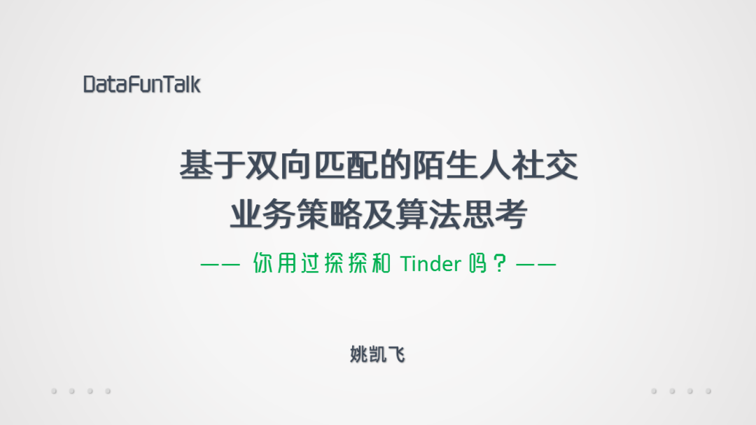 首先我们大致介绍下以Tinder为代表的陌生人社交的业务和产品形态,然后再分享其中一些比较有趣的问题,最后我们看看有哪些东西是可以数据化和算法介入的。