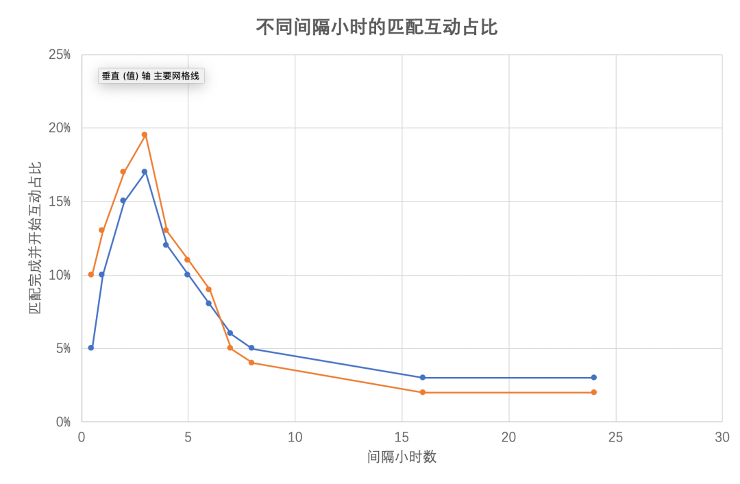 初期新用户对匹配或对高颜值的期待,会非常有别于老用户,比如往往初次体验对颜值期待更高,当然通过数据分析,我们发现颜值也是测试偏好和拉新的手段。但长期来说,匹配聊天成功率是普遍的终极需求。新用户的首次匹配成功,开启聊天的时间间隔,会对长期留存产生较大的影响。
