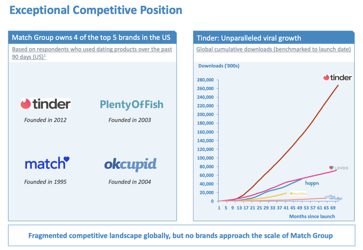 Tinder的母公司Match Group作为交友领域的鼻祖,在婚恋社交领域产品矩阵非常庞大,发展迅速,并且有很好的盈利,旗下产品和近年来的收入及盈利可参考下图 ( 来自其财报 ),其中Tinder更是众多APP中发展最迅猛的,Tinder也是全球除了游戏以外,IAP ( In-App Purchase ) 付费最高的产品。