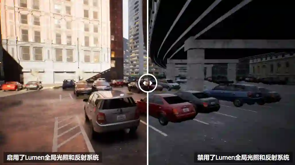 首先是 Lumen,这是一个全动态全局光照解决方案,能够对场景和光照变化做出实时反应,而且不需要专门的光线追踪硬件。据虚幻引擎团队介绍,该系统能够在宏大而精细的场景中渲染间接镜面反射和可以无限反弹的漫反射,小到毫米级,大到千米级,Lumen 都能处理。美术师和设计师可以使用 Lumen 创建出更动态的场景,例如,改变白天的光照角度,打开手电,或者在天花板上开个洞,系统会根据情况调整间接光照。该解决方案为美术师省下大量时间,美术师无需因为在虚幻编辑器中移动了光源而等待光照贴图烘焙完成,也无需再编辑光照贴图 UV。同时光照效果也将和在主机上运行游戏时保持完全一致。