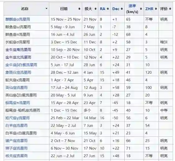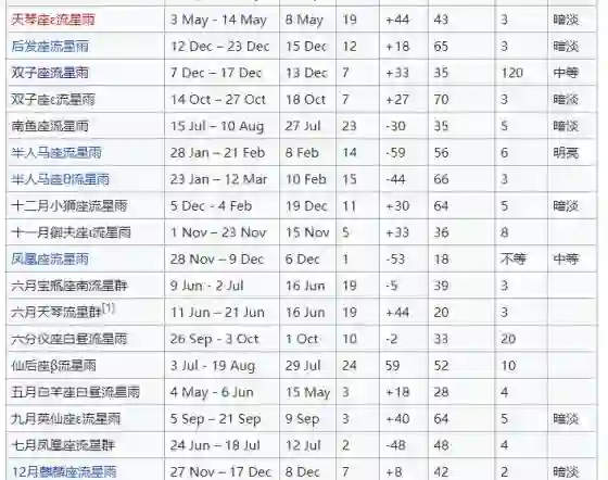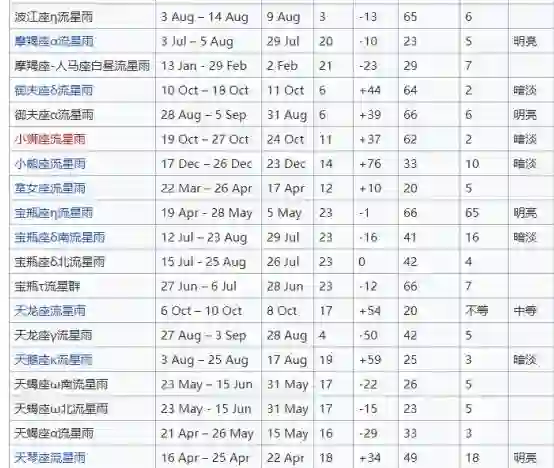 有,而且很多。下面是常见流星雨的列表,看看有没有自己的星座吧~