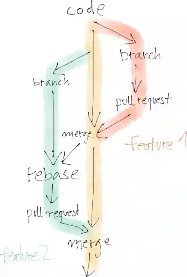 这些不同之处也在代码日渐开发出来的方式上表现得非常明显。开发人员常常尽量遵循一个明确定义的过程,其中涉及为独立的工作流创建分支程序,接着对各个分支进行检查,然后再并入主干。开发人员可以并行工作,但需要把已核准的分支集成到主干程序中,然后再从主干上建立新的分支,如此往复。这一切是为了确保主干能以有序的方式完成开发。