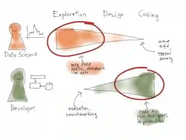 根据我的经验来看,让数据科学家和开发人员各自为政是无法做到这一点的。但同时,必须承认他们的工作模式不同,因为他们的目标不同:数据科学家的工作更具探究性,而开发人员更关注于打造软件和系统。如果让双方以一种最适合这些目标的方式工作,并在他们之间定义一个明确的接口,就有可能把双方结合在一起,迅速地尝试新方法。这要求数据科学家具备更多的软件工程技能,或者至少要有能够架通两个世界的工程师提供支持。