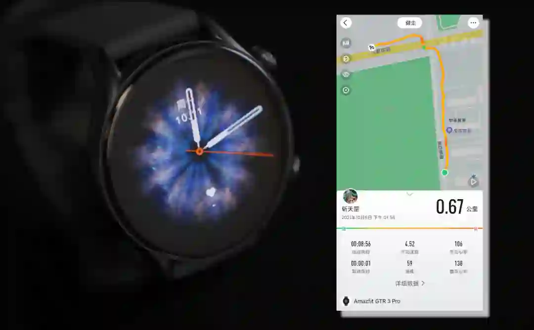 运动监测方面,GTR 3 与 GTS 3 均可以做到 50 米专业防水以及水下心率监测,并有超过 150 种运动模式更是可以满足用户的各类运动需求。运动定位,这次除了我们熟悉的北斗、GPS、GLONASS、Galileo 四星之外,华米还额外增加了 QZSS 卫星定位,覆盖更加全面。在室外,搜星速度一般在 8-10 秒左右,表现优异。