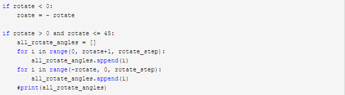 我们对旋转的角度存储到列表中,旋转角度的范围是[-rotate,rotate].