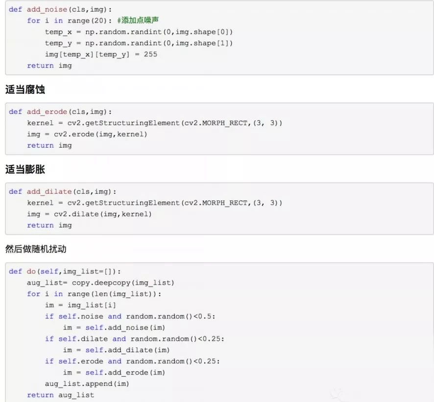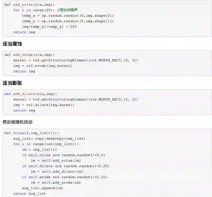 第三步生成的汉字图像是最基本的数据集,它所做的图像处理仅有旋转这么一项,如果我们想在数据增强上再做多点东西,想必我们最终训练出来的OCR模型的性能会更加优秀。我们使用opencv来完成我们定制的汉字图像增强任务。