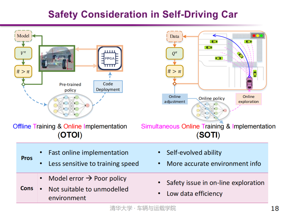 第二,同时训练和应用策略,即SOTI方法:这是利用强化学习的探索试错机制,通过在线探索环境产生数据,实现自动驾驶策略的在线自我更新。这类方法要求强化学习算法必须进行在线部署,从而进行在线地探索和在线地训练。