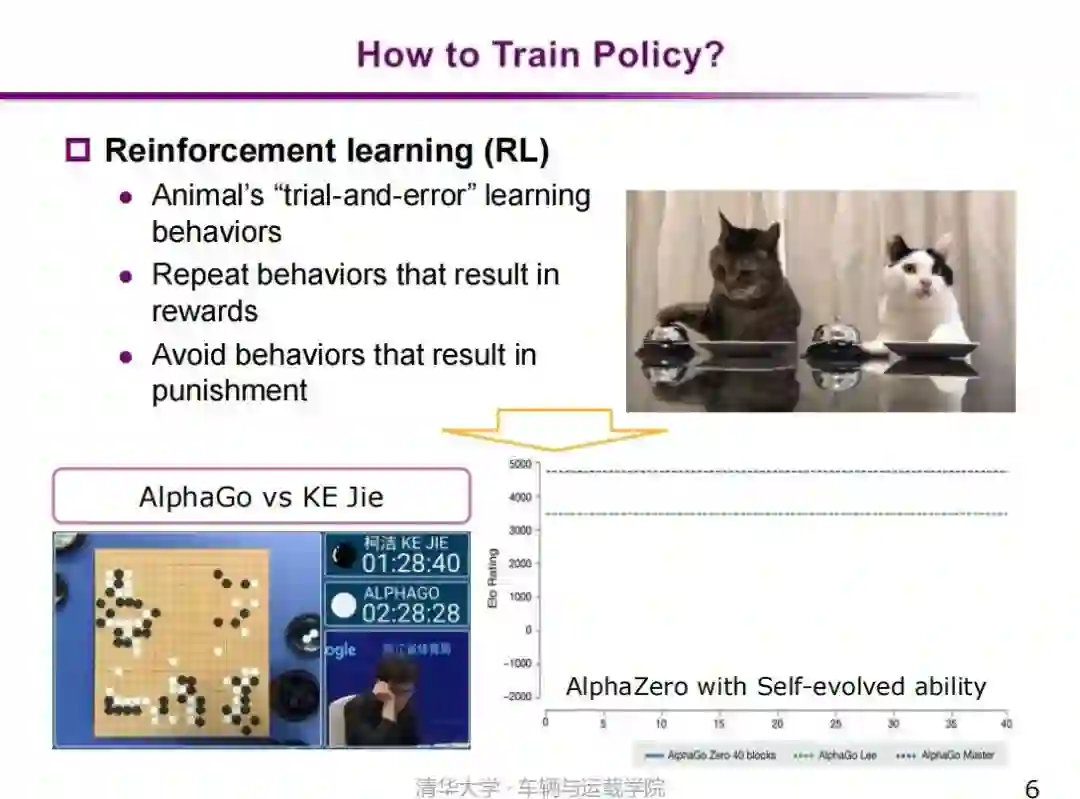 近年,强化学习作为一类自主进化型学习方法得到了普遍关注。一个典型的例子是围棋智能的突破。谷歌DeepMind的第一代围棋智能(AlphaGo),采用监督学习与强化学习结合的方式训练落子的决策智能,使其具备战胜人类职业棋手的能力。电脑下围棋可以打败人类职业棋手,这一里程碑事件是之前大家不敢想象的事情。尤其是AlphaZero这一版本,采用自我更新、自我进化的机制,仅用21天的自我学习就可以战胜之前的AlphaGo版本,这展示出了强化学习具有类似人类学习机制的巨大潜力。