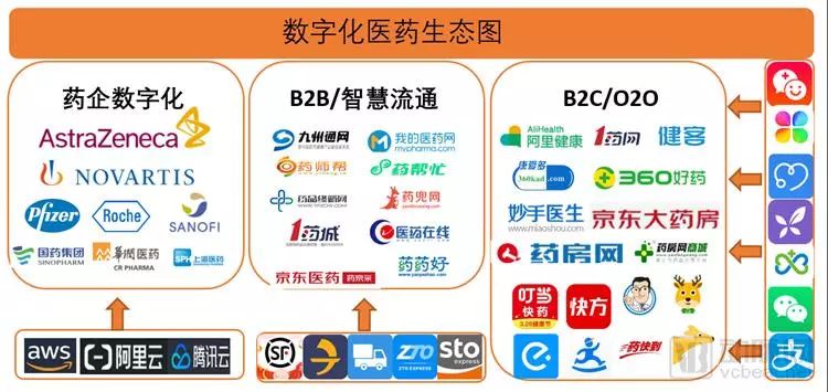 111集团也是典型案例之一。1药网一开始是1号店的一个子频道,后独立运营,再发展成为拥有“三驾马车”的111集团:B2C医药平台“1药网”、互联网医院“1诊”,B2B医药平台“1药城”,通过创新的T2B2C的模式,全面实现B端和C端、线上和线下、自营和平台、医和药的融合发展。最近,111集团还在尝试与商业保险公司合作,开发新型险种、尝试PBM业务等。