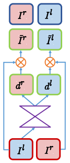 通过公式(1)与公式(2)可以发现,深度与视差成反比,因此深度估计和视差估计的方法可以互用。Deep3D[1] 虽然通过视差概率估计实现2D到3D介质的转换,但固定视差的设定,难以适应不同分辨率2D介质输入;