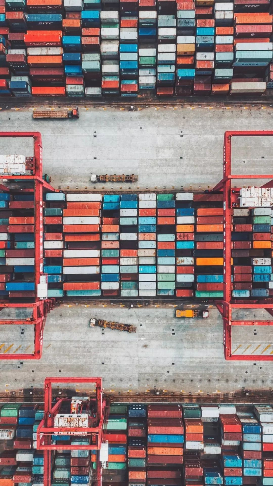 画面中对称而不乱的东西,一些日常经常看但是从未从航拍视角见过的,或者是体现孤独的东西,比如一颗孤独的树,大洋中一艘孤独的船只都会成为他镜头下的故事。